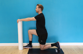 kneeling side. Maintain this contraction of the glute whilst you drive the hip on that side forward towards the club/ foam roller. You will feel a stretch through the front of the thigh/hip on that side.