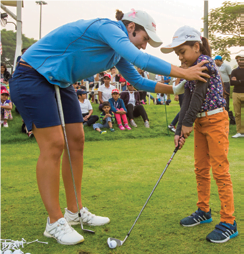 Ciganda discussed the importance of education, her routine before playing a competitive round and her practice schedule. Kids were then invited to hit balls with her. To the delight of everyone present, Ciganda put on a ball striking clinic before India’s Simi Mehra took centre stage.