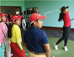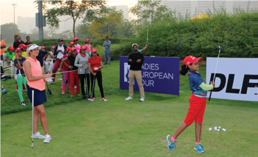 Later the kids were ushered to two clinics held by India’s Neha Tripathi and Scotland’s Carly Booth. Tripathi who is one of the leading players on the WGAI, spoke about the essentials attached to the full swing including judging distances, the importance of a pre-shot routine and the pressure attached to playing the game professionally.